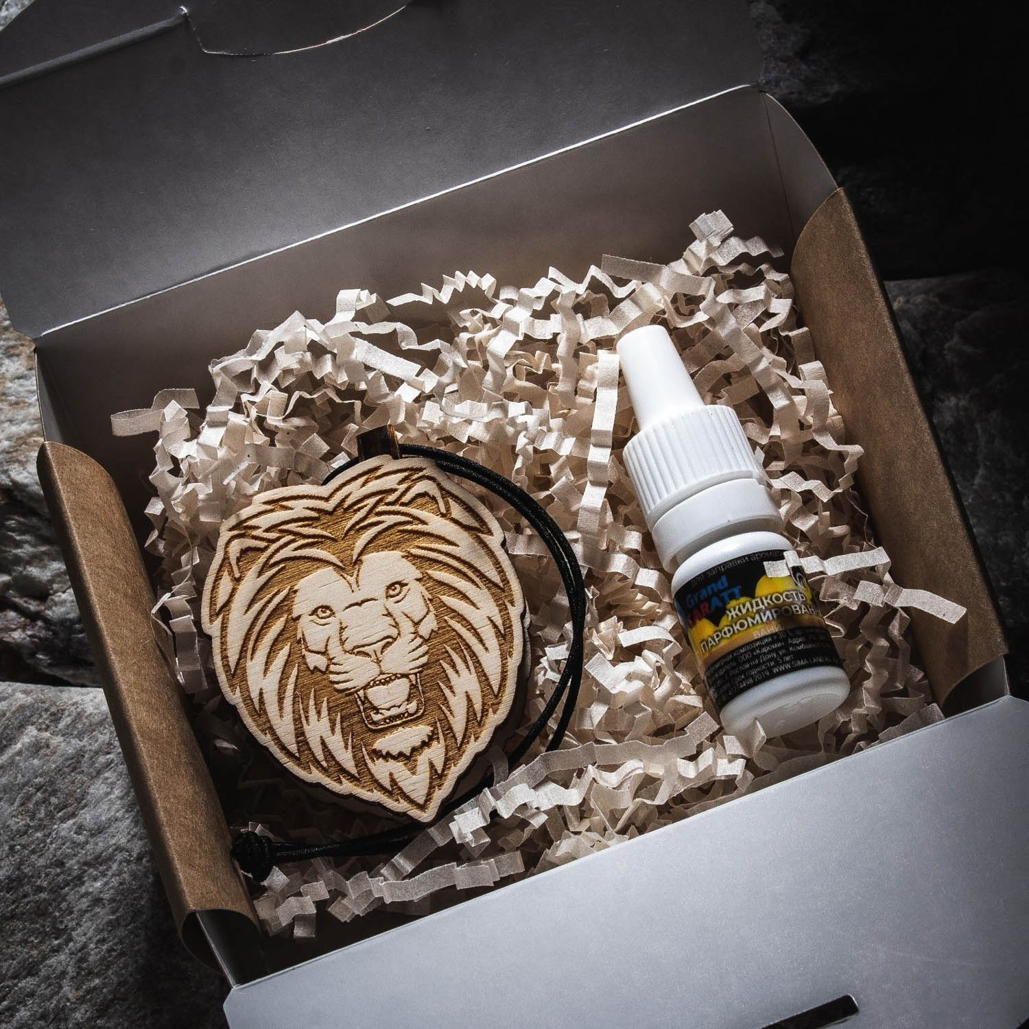 Ароматизатор подвесной из натурал дерева, набор: подвеска Лев (дерево, войлок), ваниль 5мл 9061736
