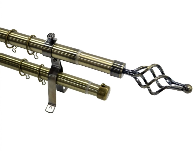 Карниз кованый раздвижной d28мм 2-рядный бронза, наконечники Сетка 1,6-3,0 Joreven *1