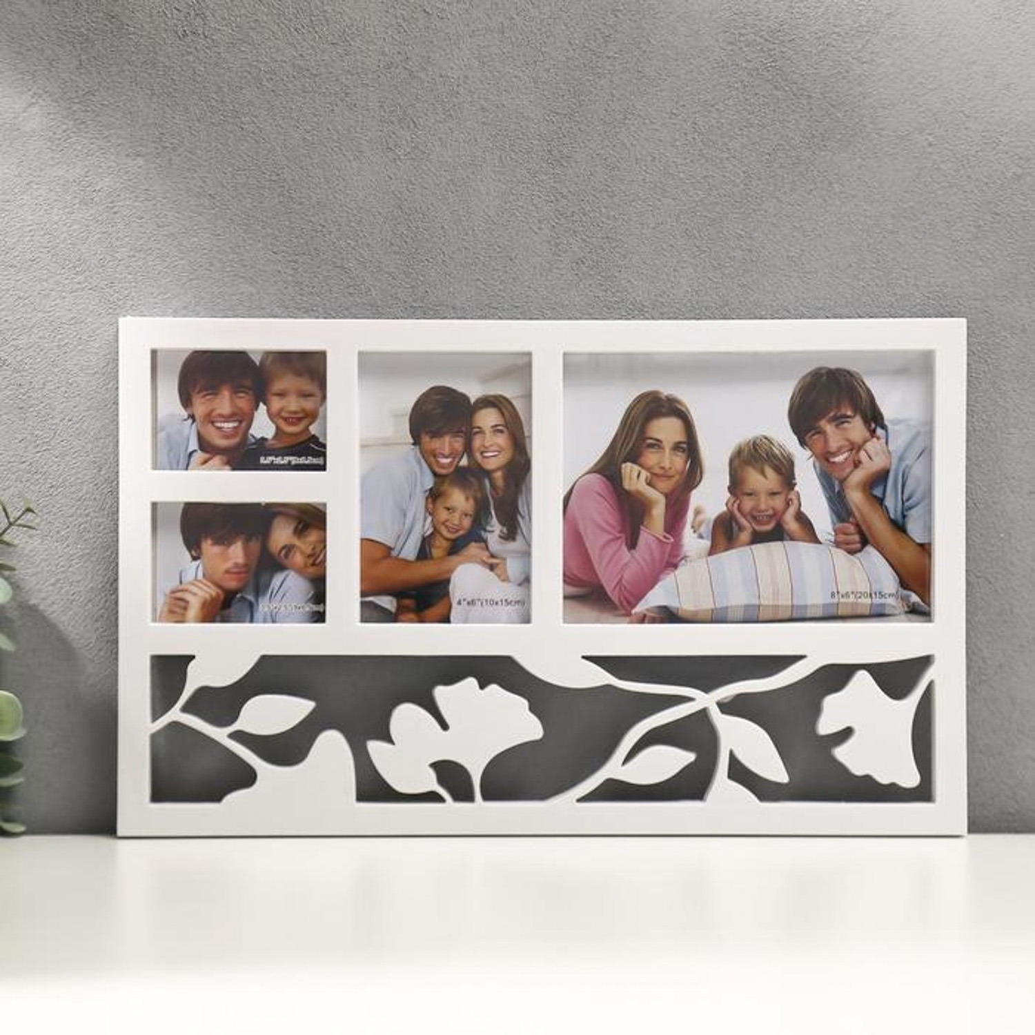Фоторамка пластик на 4 фото 6,5x9, 10x15, 20x15 см "Листья"  43x26 см 134748