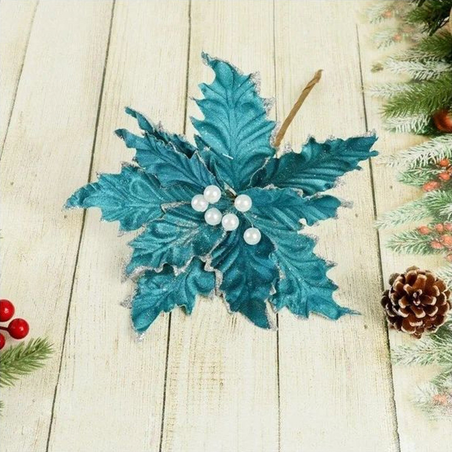 Декор "Зимний цветок" жемчужины, 23х19 см, синий 4295957