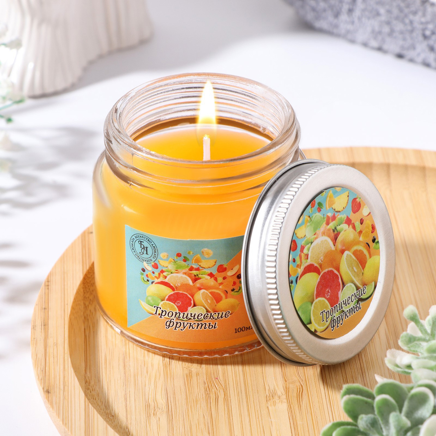 Ароматическая свеча в банке, 6.3 см, 100 мл, тропические фрукты