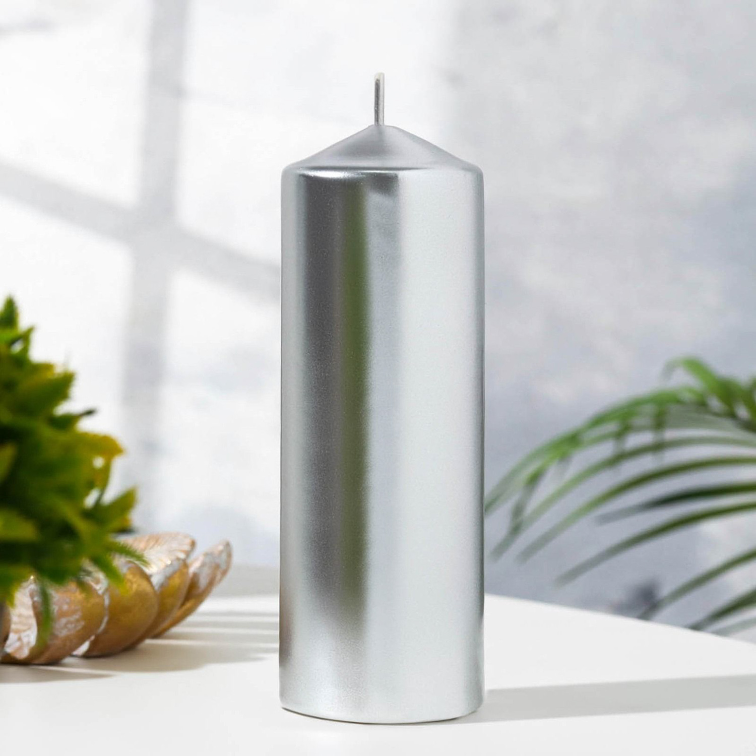 Свеча "Столбик", серебристая, 5,5×15см 3093223