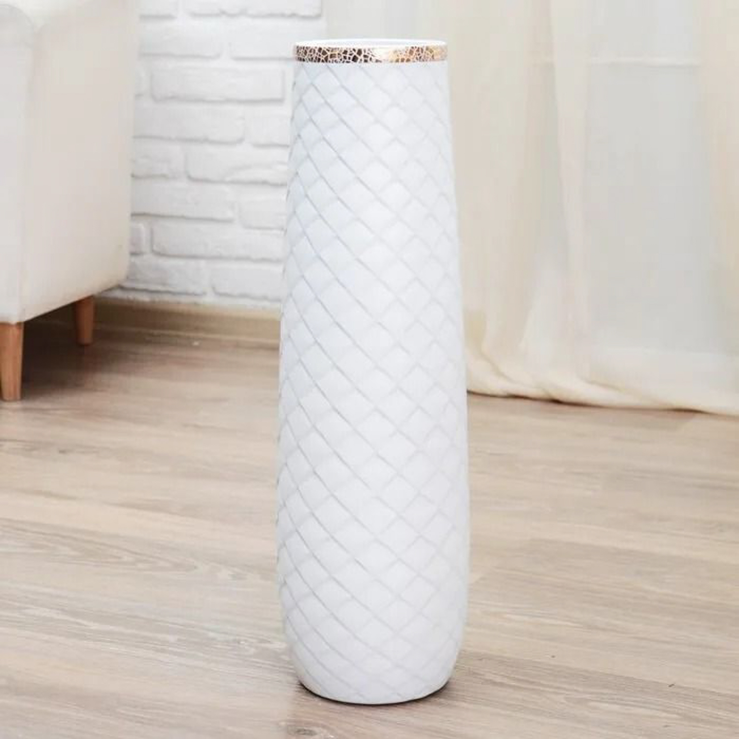 Ваза керамика напольная "Геометрия люкс" ромбики, 14х60 см, белый 4635441