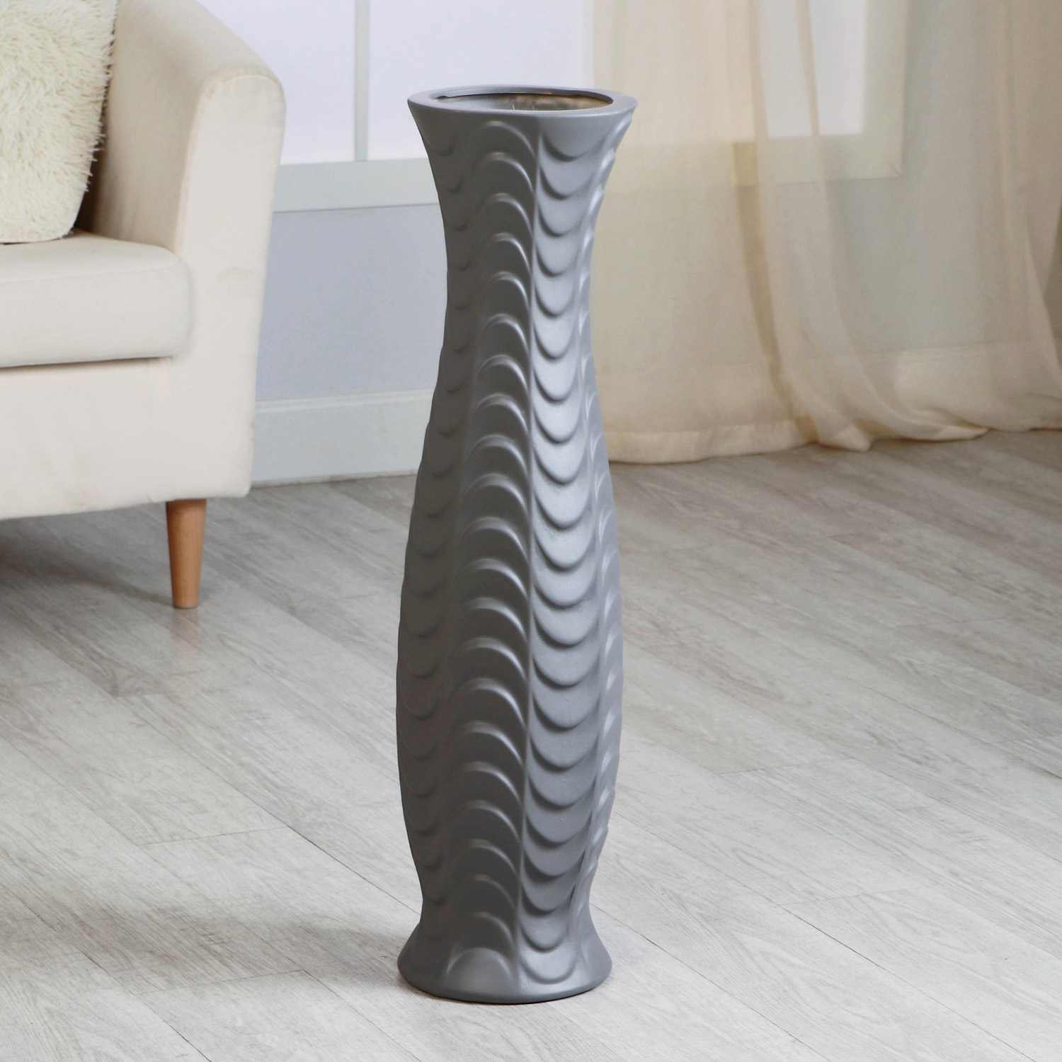 Ваза керамика напольная "Седар" волна, 17х75 см, серый 9750469