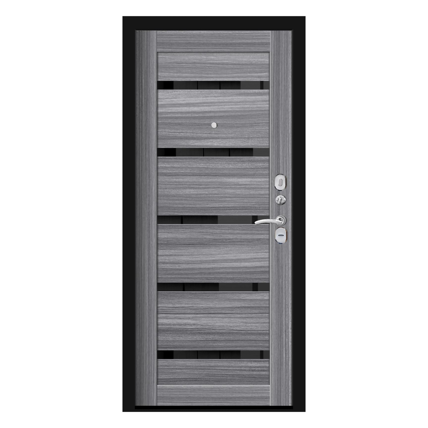Дверное полотно, основной замок, дополнительный замок, ночная задвижка, глазок, ручка, петли - 2 шт.