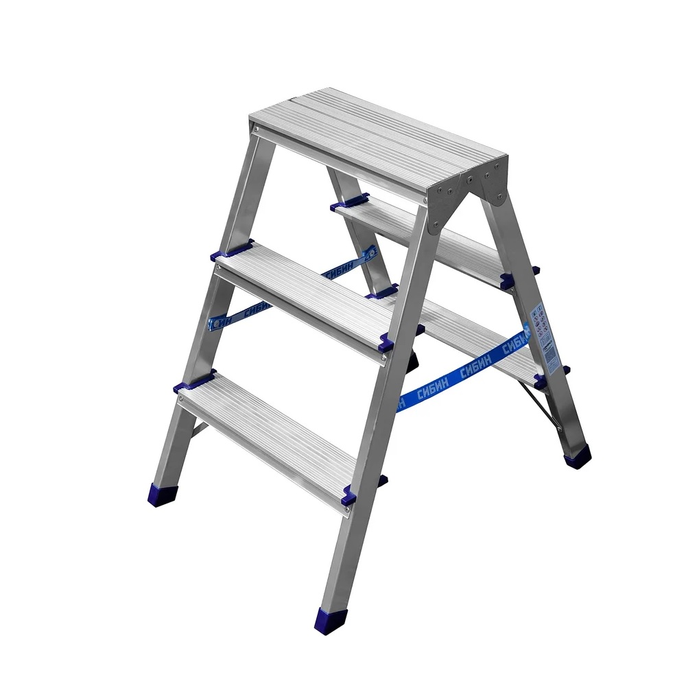 яяяСтремянка алюминиевая 2-х сторонняя 3 ступени, выс.верхн. площ.0,65м 38825-03 "СИБИН" *1