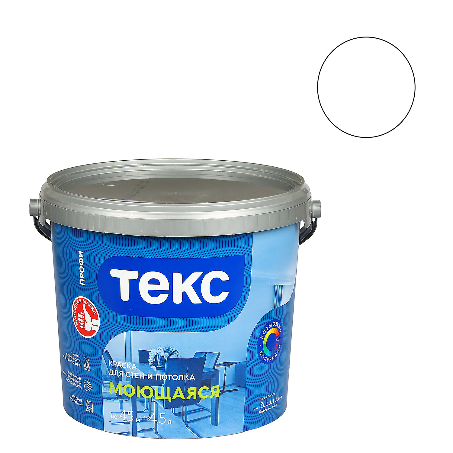 Краска акриловая для стен и потолков 4,5 л ТЕКС  "Профи" моющаяся База A *1/44