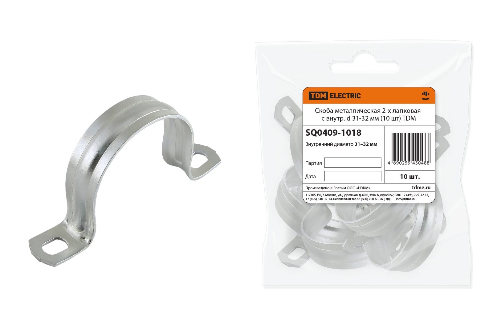 Скоба металлическая 2-х лапковая с d 31-32мм (10шт) TDM SQ0409-1018 *1