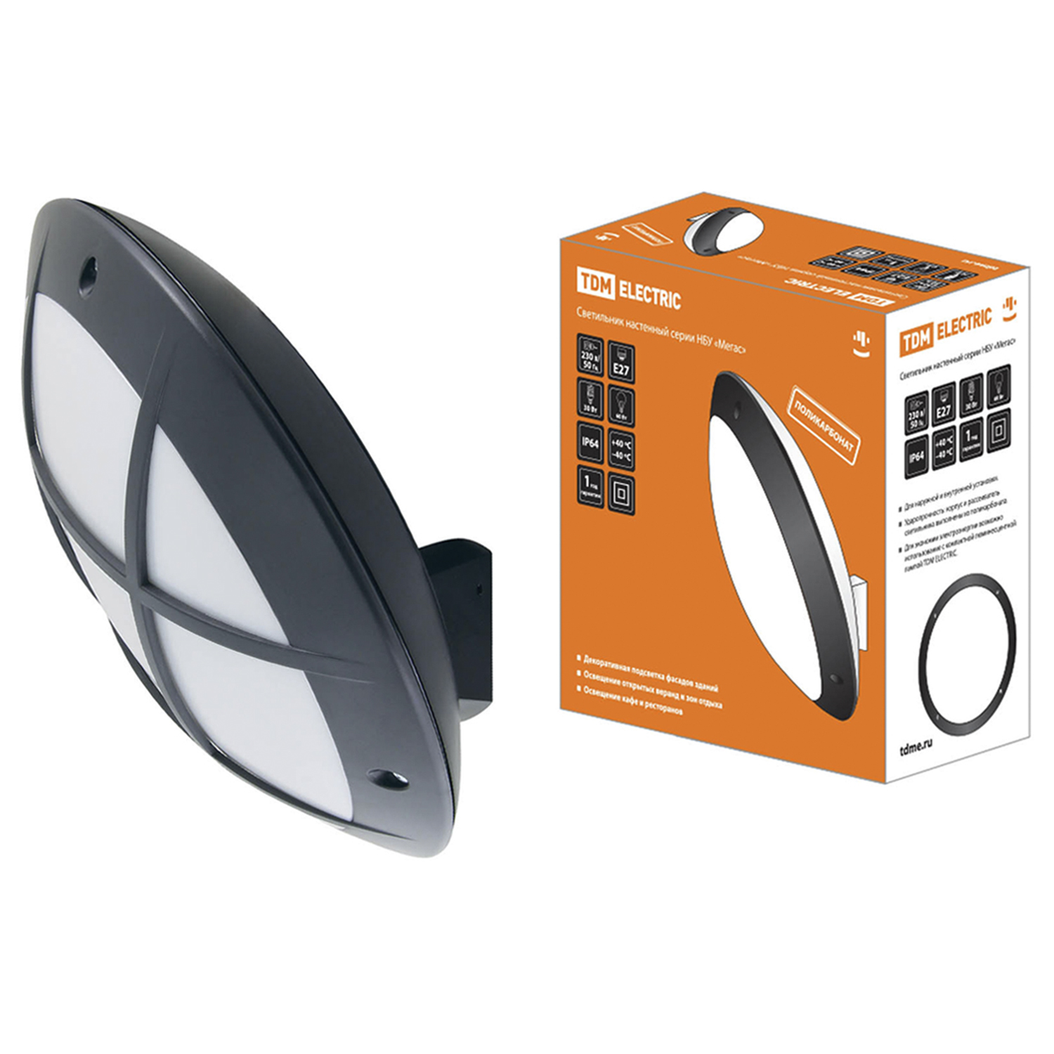 Светильник НБУ 05-60-008 "Мегас 2" черный с решеткой Е27 IP64 TDM SQ0328-0308 *1/5