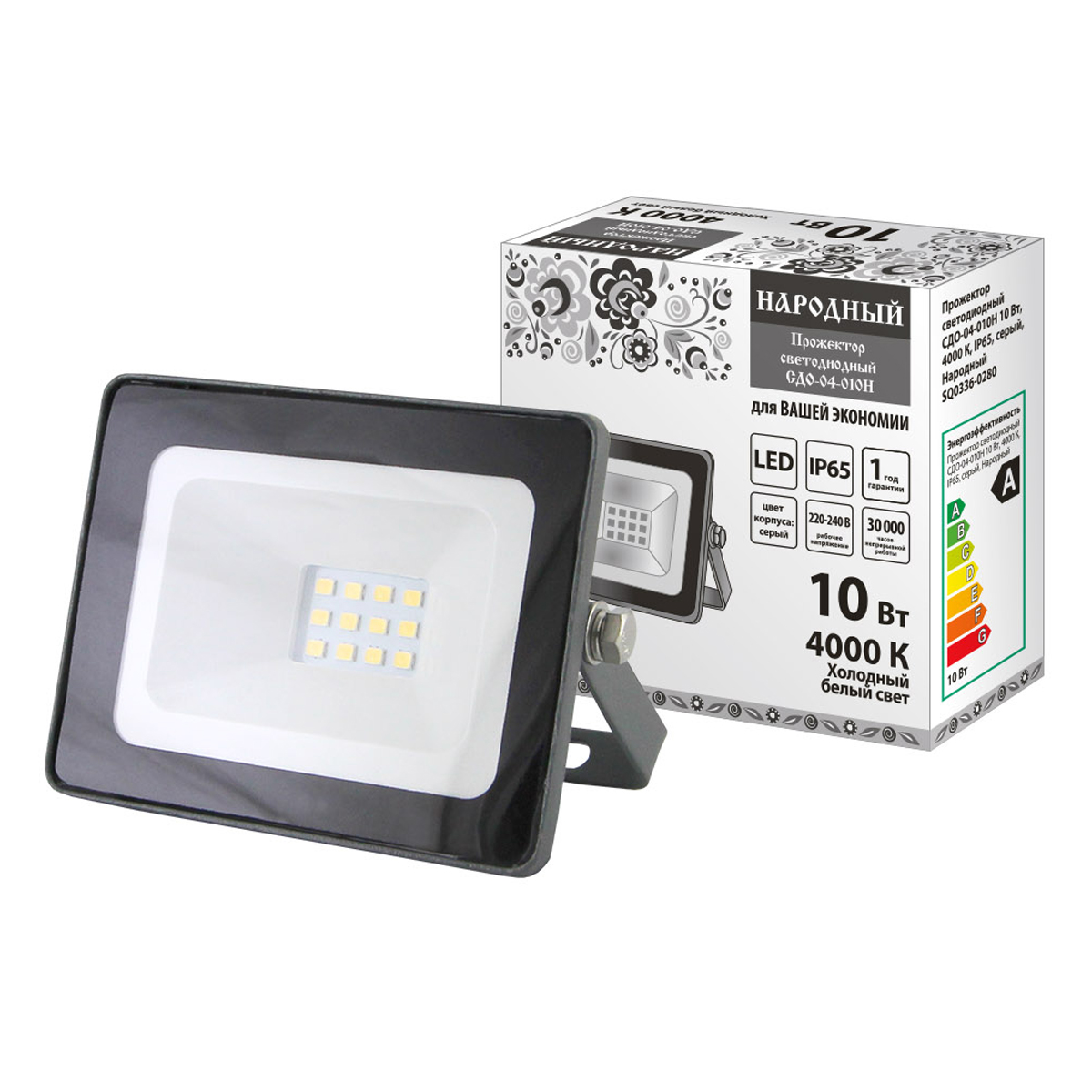 Прожектор светодиодный 10Вт 4,0К IP65 серый Народный SQ0336-0280 *1/40
