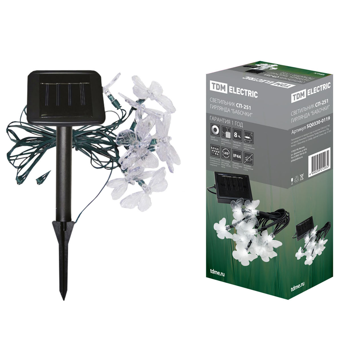 Светильник садовый на солнч. батарее СП-251 гирлянда "Бабочки"-10 TDM SQ0330-0119 *1/12