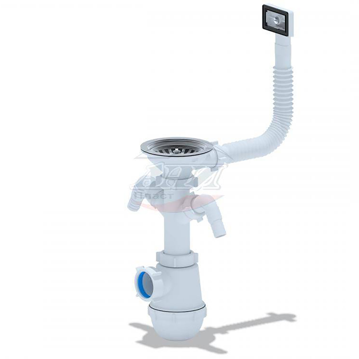 Сифон для кухонных моек с диаметром сливного отверстия 90мм, бутылочного типа с увеличенным корпусом. С разборным выпуском и нержавеющей решеткой, с гибким прямоугольным переливом для моек из нержавеющей стали. Корпус перелива оборудован универсальной прокладкой для круглых и прямоугольных моек, нужная сторона прокладки достигается путем переворота. С двумя отводами для подключения бытовой техники. Выход для подключения к канализации 40мм