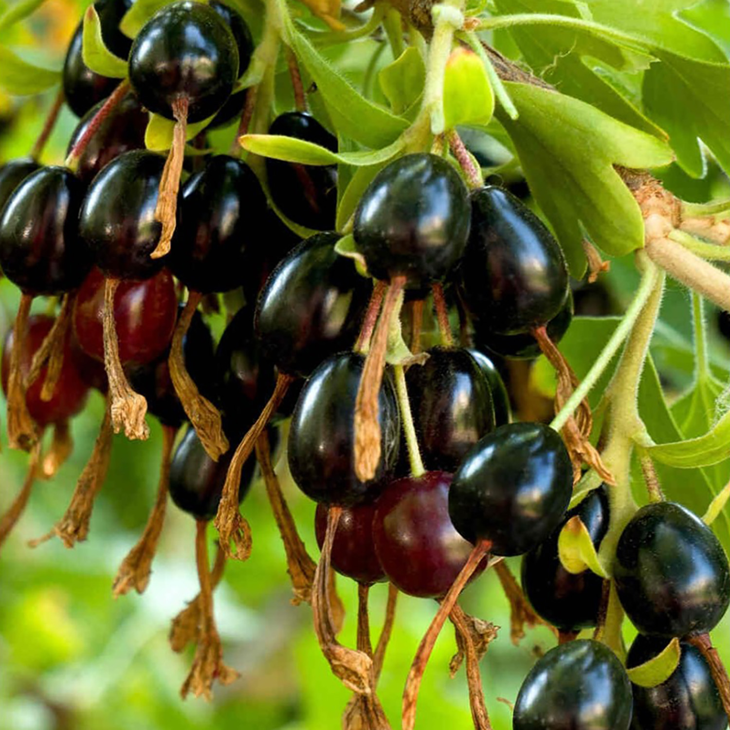Это самая урожайная смородина. Плоды массой до 3.8 г имеют округлую или каплевидную форму. В основном они черные, но могут быть оранжевыми, бордовыми и даже золотисто-желтыми. Мякоть нежная, сладкая с черничным ароматом.