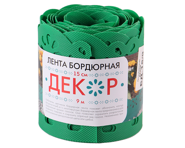 Бордюрная лента Садовая для грядок, клумб "Декор" пласт. выс.15см дл.9м Зеленый БД-15/9 (Протэкт) *1