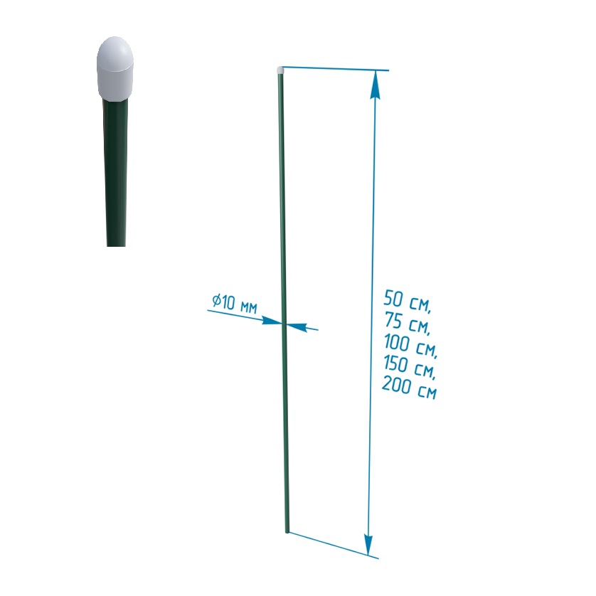 Опора-колышек для растений метал, выс 750 мм, d трубы 12мм Зеленый 10002910СБ *30
