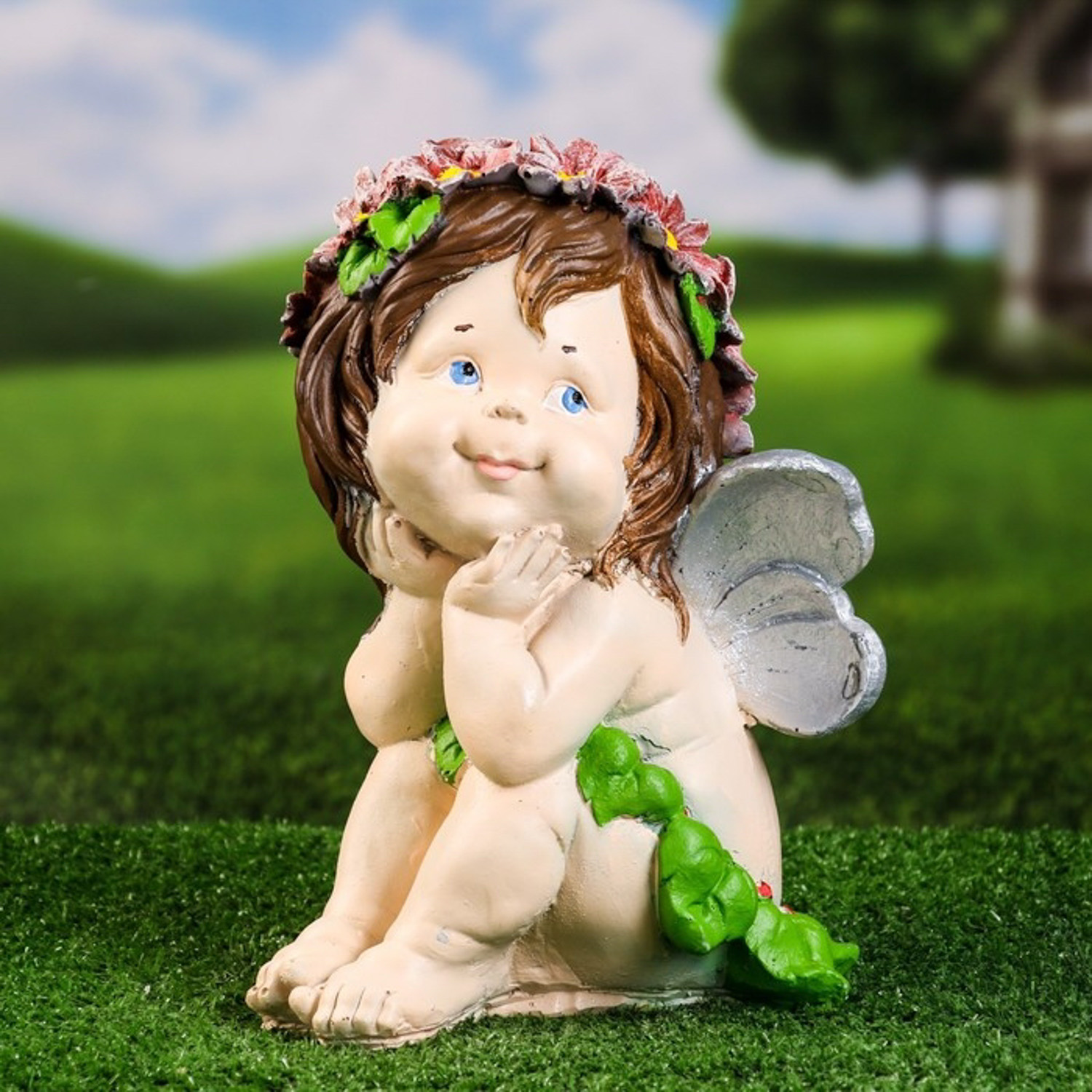 Садовая фигура "Ангел мечтатель" цветной, 27х20см 9567035