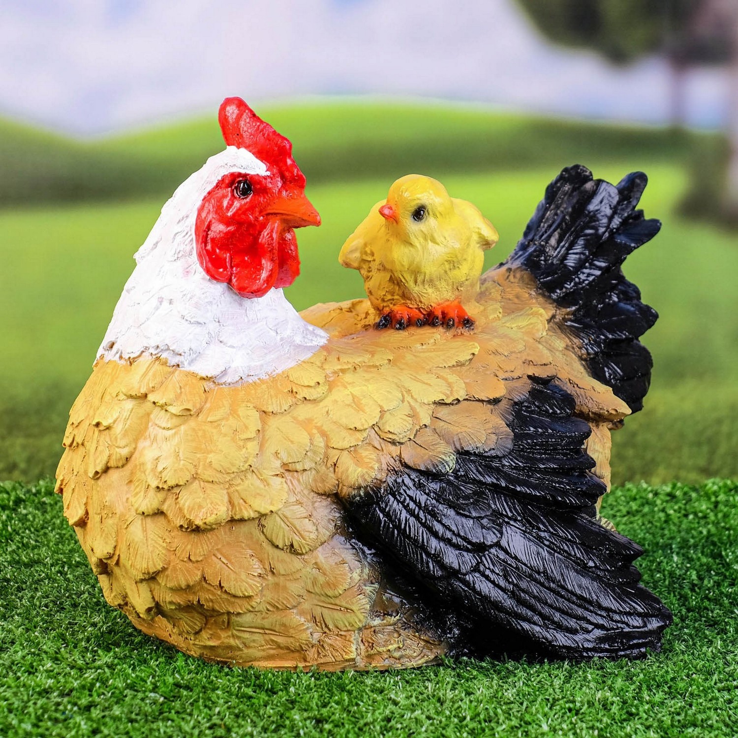 Садовая фигура "Курица наседка с цыплятами" пестрая 30х25см 3242425