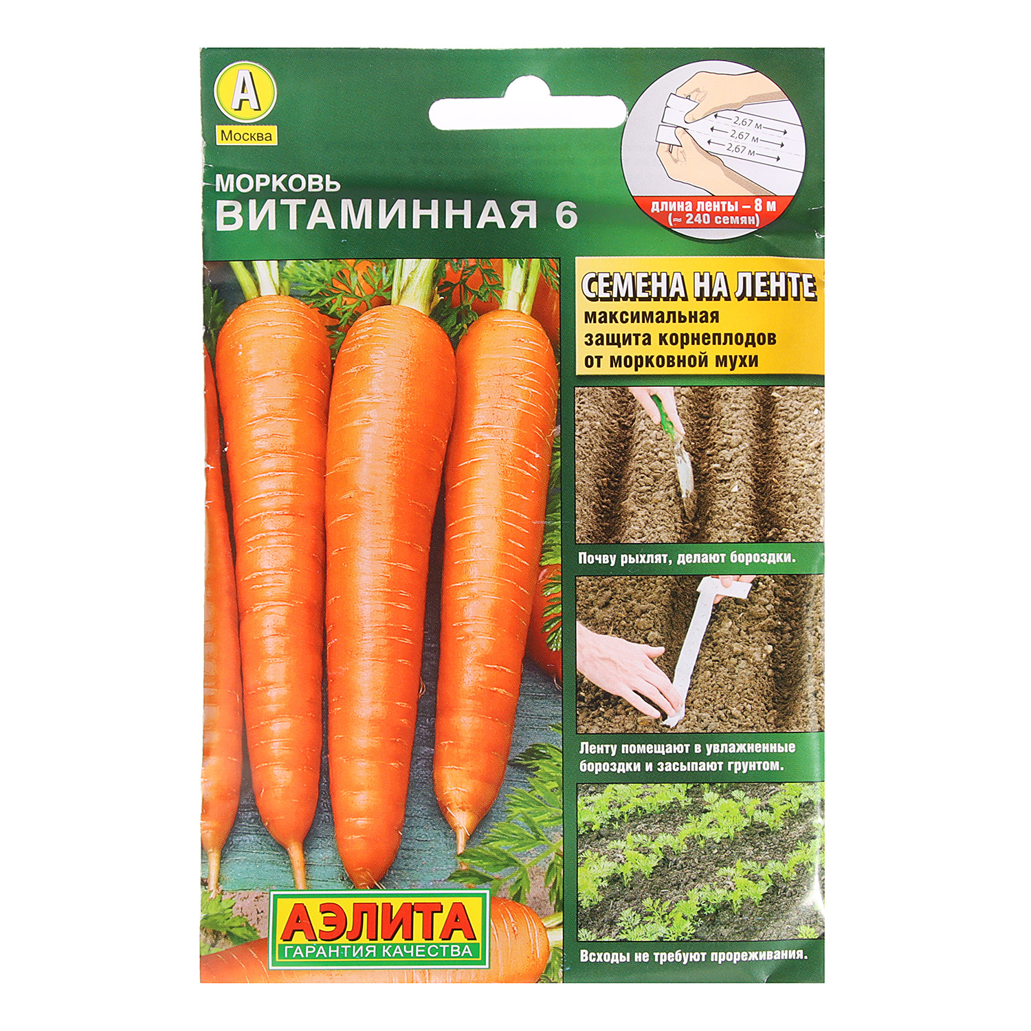 Семена Морковь Витаминная 6 8м ЛЕНТА Аэлита *10/500