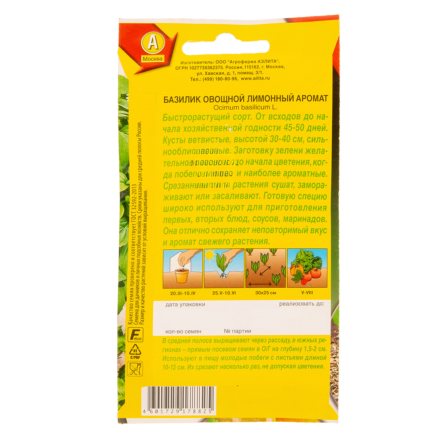 Семена Базилик Лимонный аромат 0,2 гр Аэлита цв *10/200
