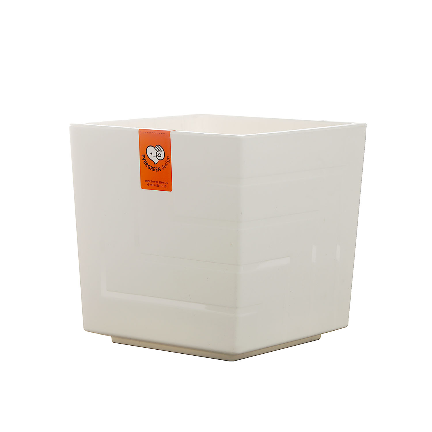 Кашпо 6.6 л Live in Green Квадро КВ20-10, 20х20х20 см, с дренажной вставкой, пластик, белый