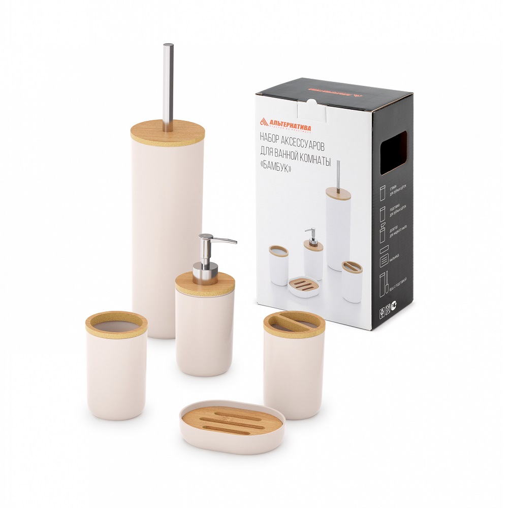 Набор д/ванной комнаты пластм. "Бамбук" 5пр. бежевый М8168 (Октябрьский) *1/4
