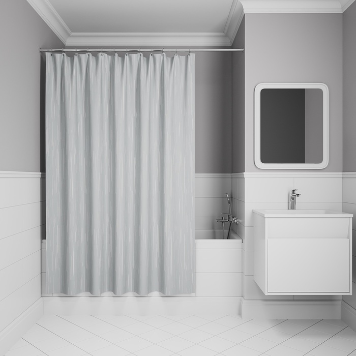 Штора для ванной "IDDIS" п/эстер 200*240см Тонкий узор, светло-серый BD02P24i11 *1/20