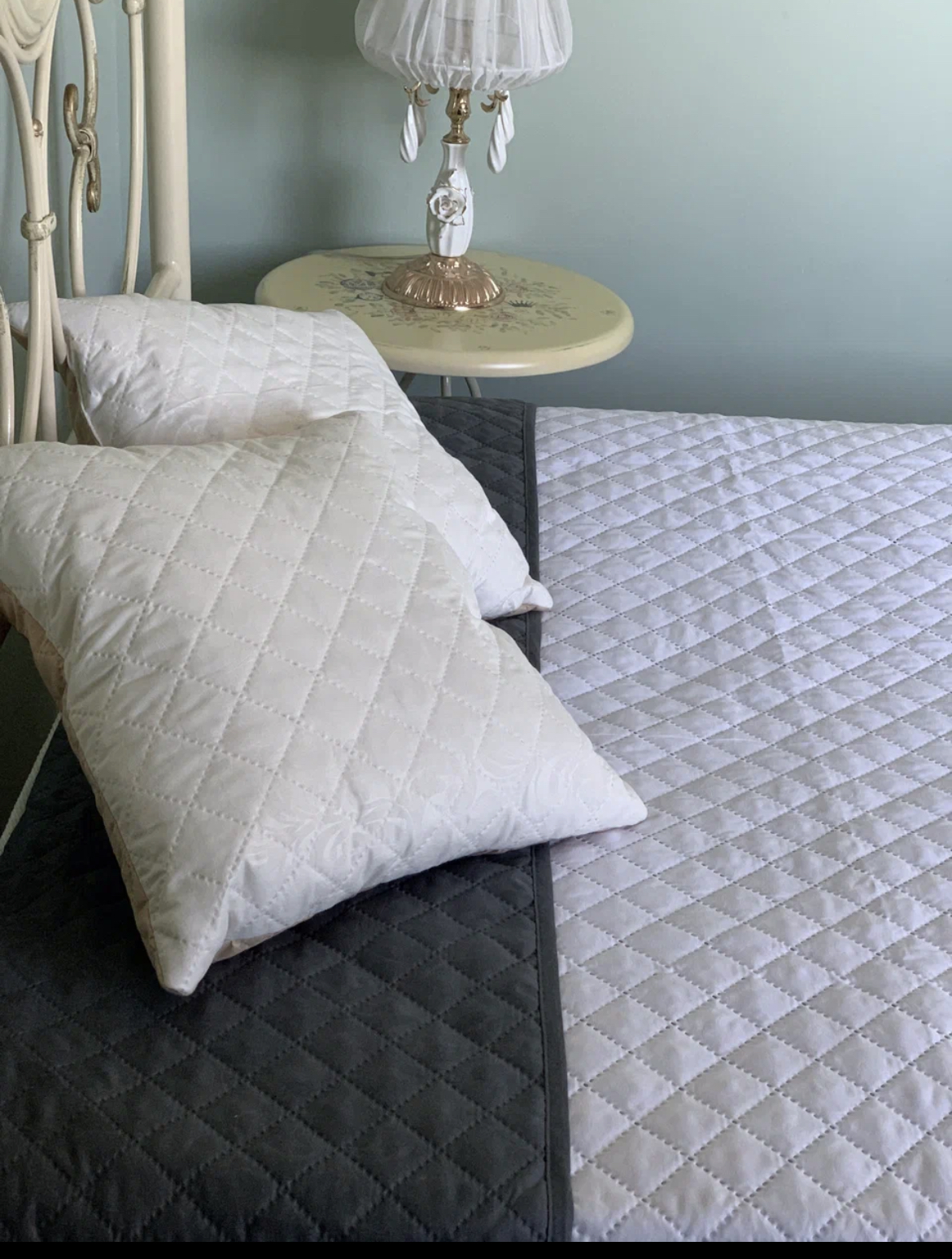 Покрывало 200х220см стеганое двухстороннее темно-серый/белый Орхидея *1