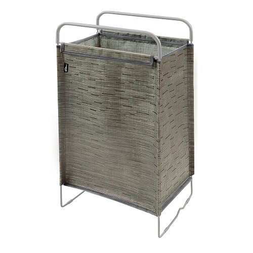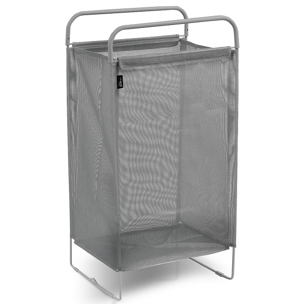 - Легкая опора мешка для белья складывается, поэтому его удобно донести до стиральной машины или убрать на хранение в шкаф;