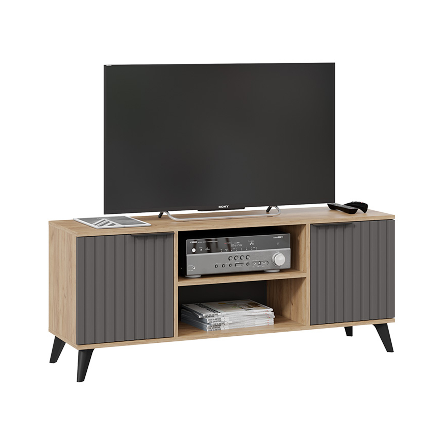 Тумба под ТВ Исп.2 1335*374*452 (Дуб крафт золотой/Графит матовый) Хилтон*1