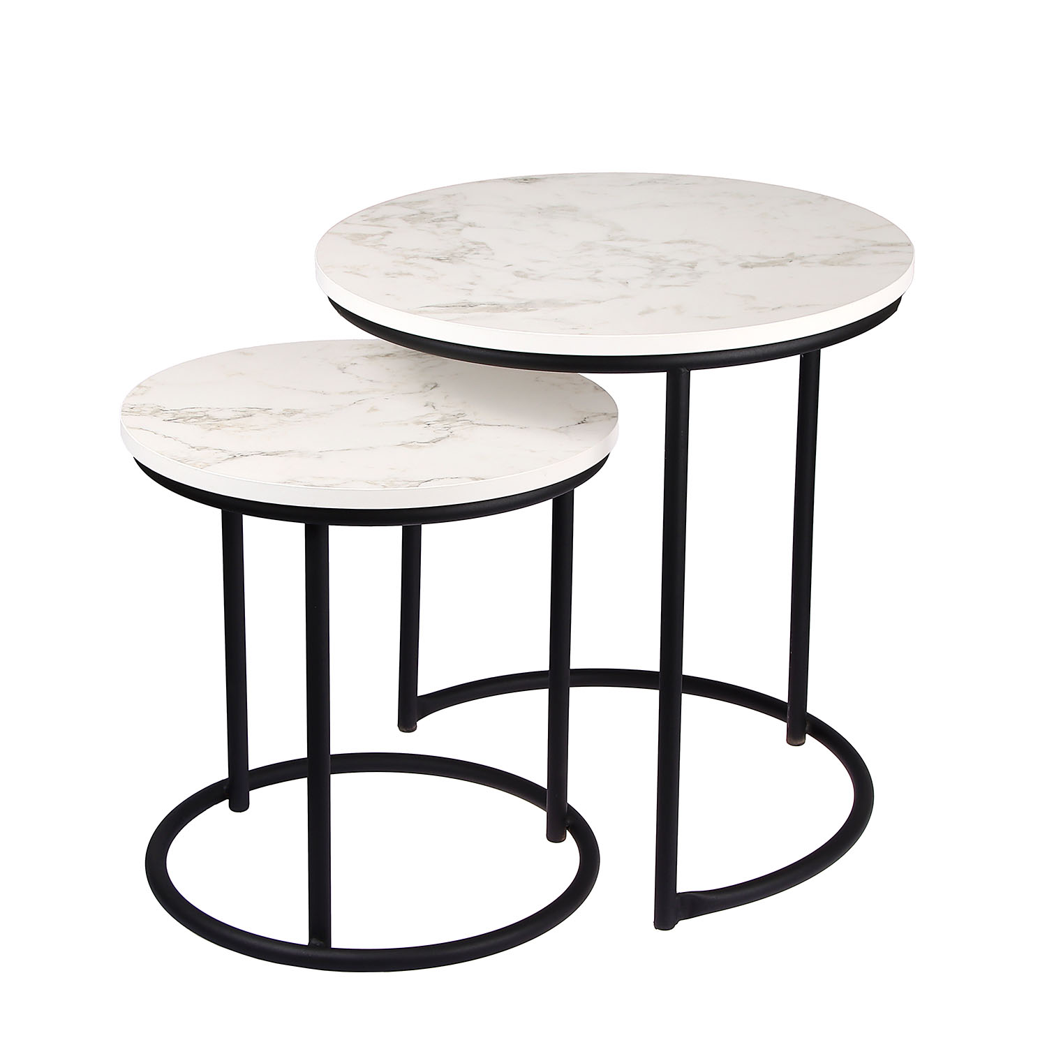 Стол журнальный МАТРЕШКА комплект столешниц 2 шт.ЛДСП Белый мрамор+Подстолье труба КРУГЛАЯ ЧЕРНАЯ*1