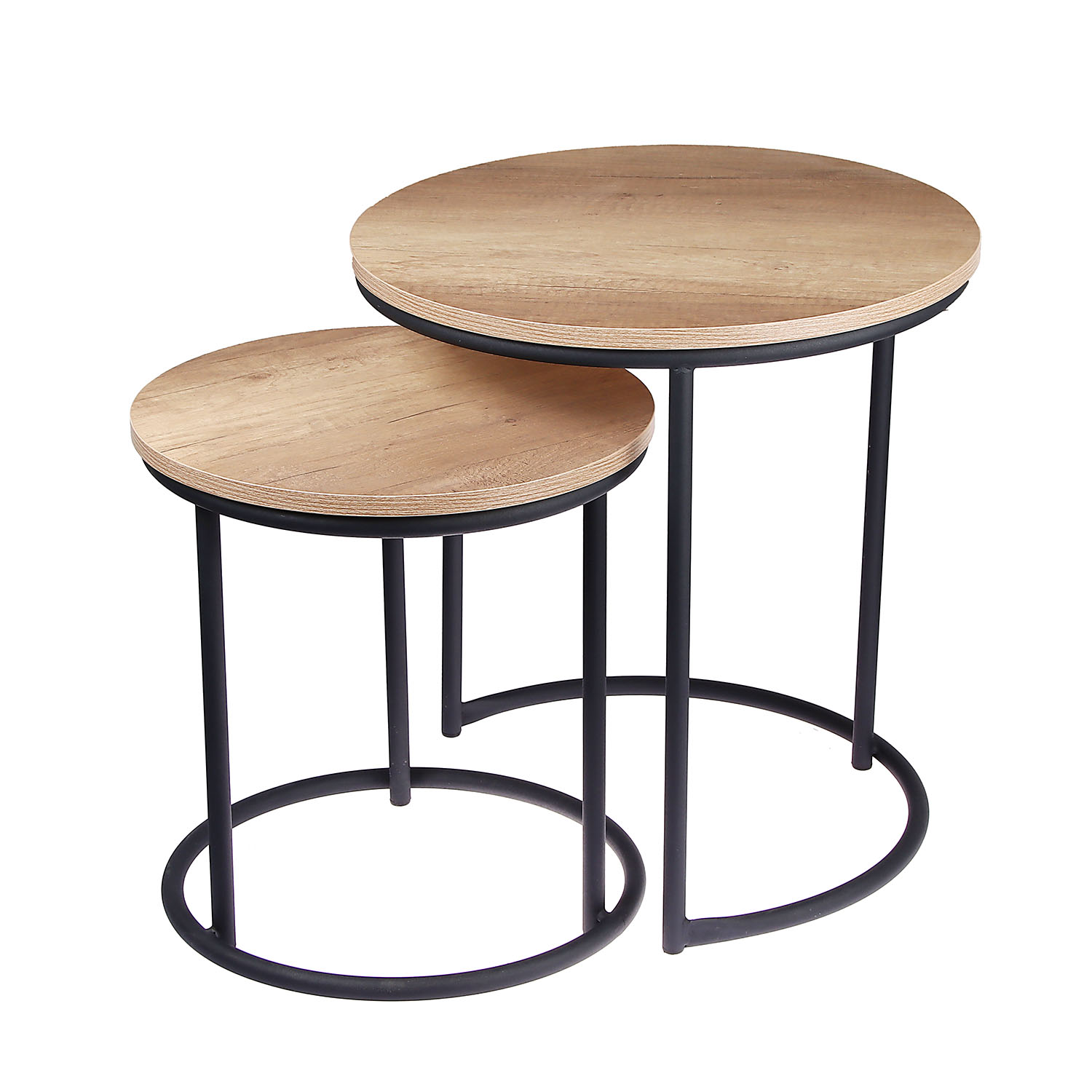 Стол журнальный МАТРЕШКА комплект столешниц 2 шт.ЛДСП Дуб КАНЬОН+Подстолье труба КРУГЛАЯ ЧЕРНАЯ*1