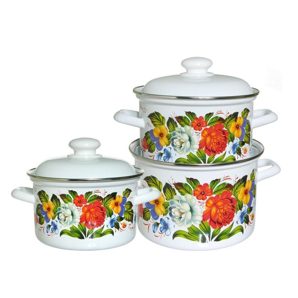 Набор кастрюль эмалированных: 2,0л+3,0л+4,5л рис. "Татьяна" С-007АП2/4 "Лысьвенские ЭМАЛИ" *1