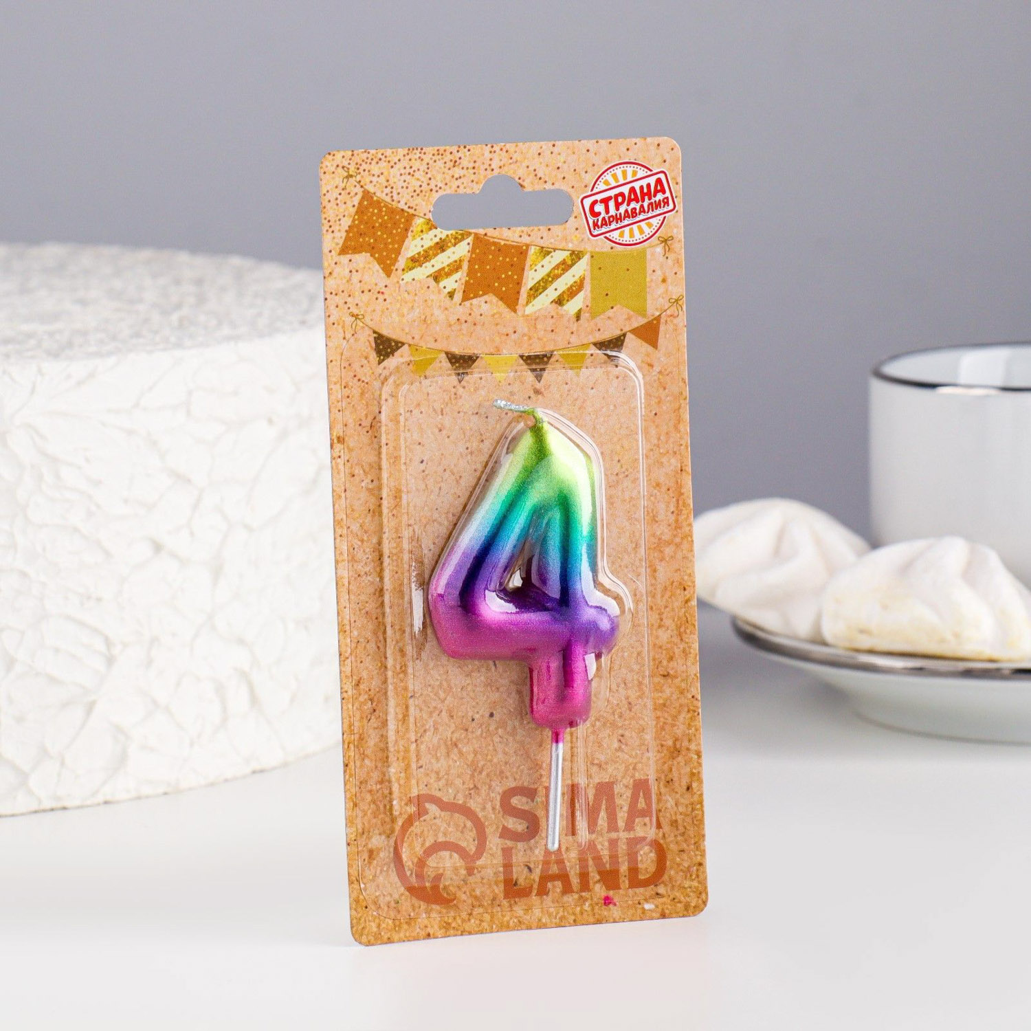Свеча в торт "Акварель", цифра 4, 6 см 120316