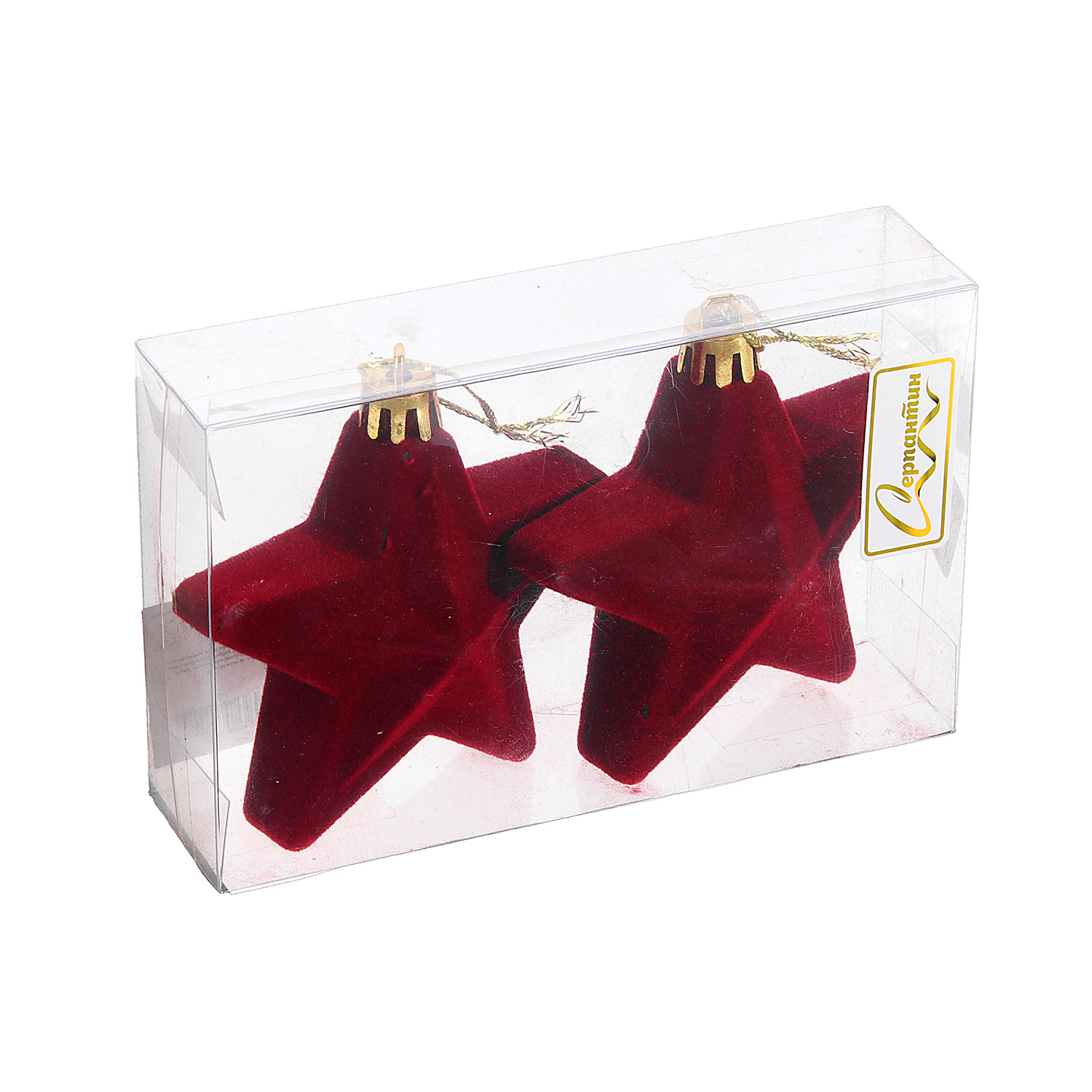 Набор ёлочных украшений VELOUR "Звезда" 8 см (набор 2 шт), Рубин