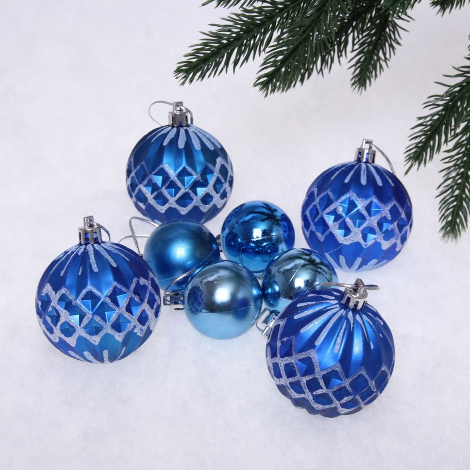 Новогодние шары 6/4 см (набор 8 шт) "Яркий восторг", Синий