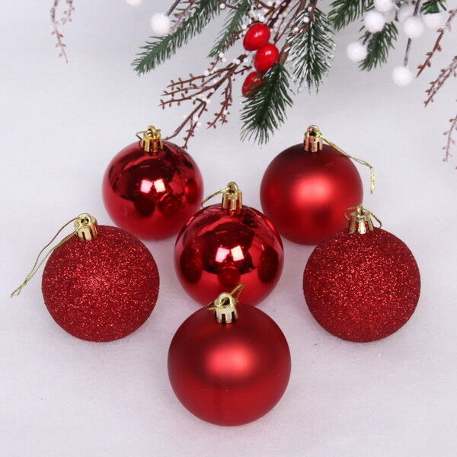 Новогодние шары 6 см (набор 6 шт) "Микс фактур", Красный