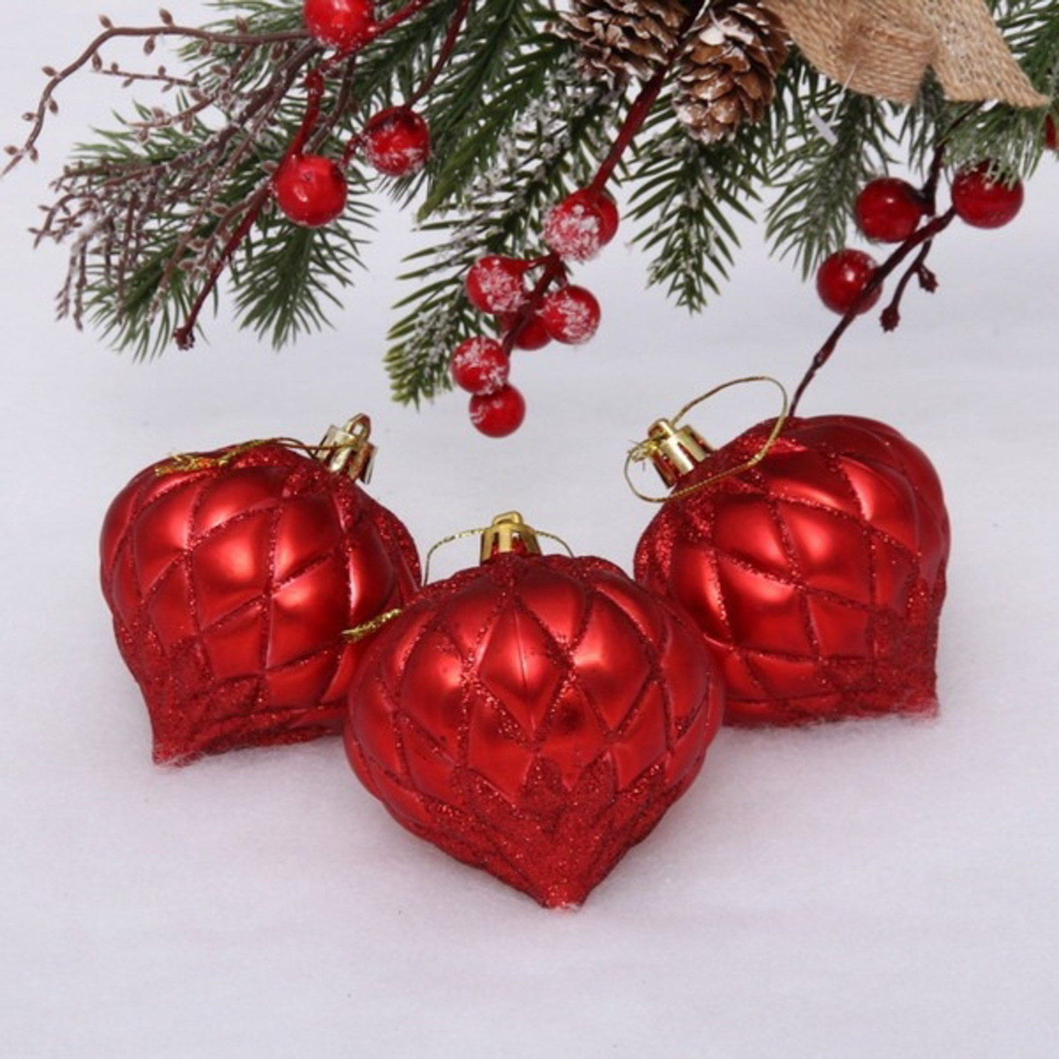 Ёлочные игрушки "Юла" 8 см (набор 3 шт), красный