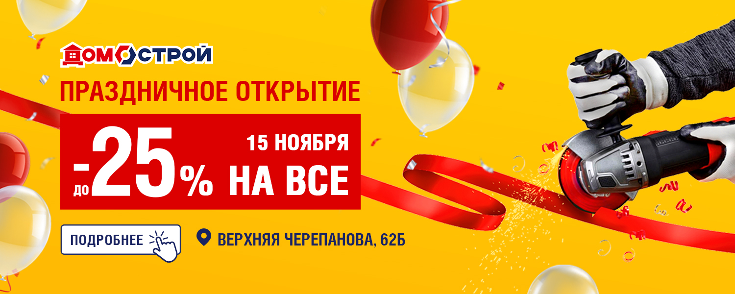 Празднуем открытие магазина после переезда 15 ноября! И в честь этого праздника дарим скидку до -25%. Если у вас запланирован ремонт, строительство или обустройство дома - не упустите возможность купить все необходимое со скидкой!