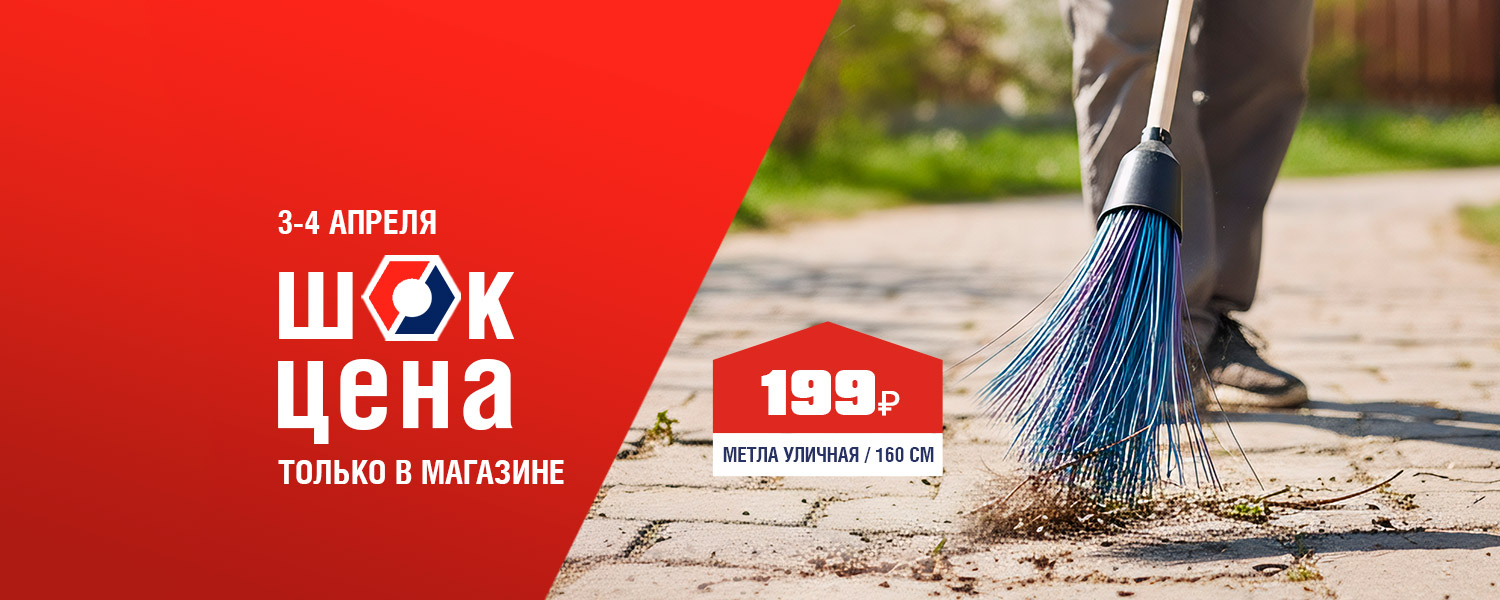 Порядок на участке требует надежного инструмента! Уличная метла длиной 160 см с черенком из березы обеспечивают удобство уборки без наклонов и надежность в работе. Широкий смет из прочных материалов гарантирует долгий срок службы, а продуманная конструкция делает уход за участком быстрым и комфортным. 3 и 4 апреля в розничных магазинах ДомоСтрой не пропустите ШОК-цену: