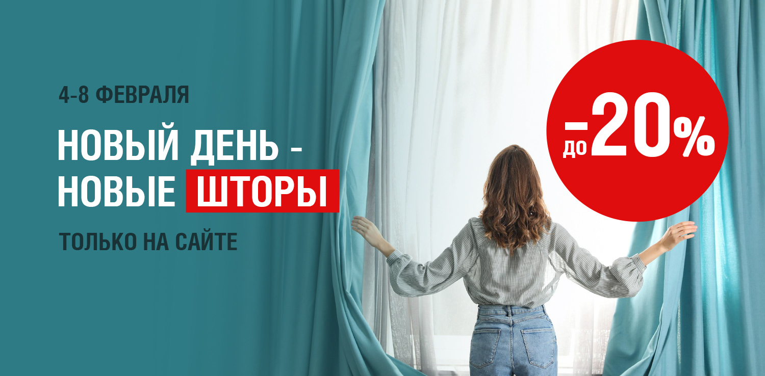 Онлайн-распродажа в сети ДомоСтрой! С 4 по 8 февраля — скидка до 20% на шторы. Текстильные или рулонные шторы, карнизы и аксессуары по выгодным ценам — это отличный шанс обновить интерьер и сделать дом еще уютнее!
